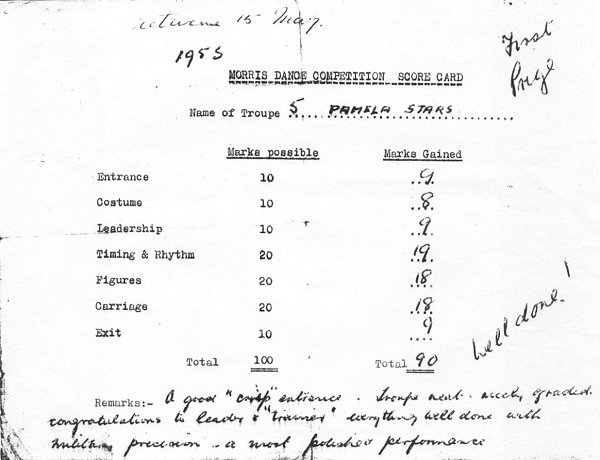 Competitions often went on till quite late and if troupes used the same music then they would sometimes dance at the same time in order to fit all the troupes in. Pauline remembered one occasion when they had to dance in car headlights.
