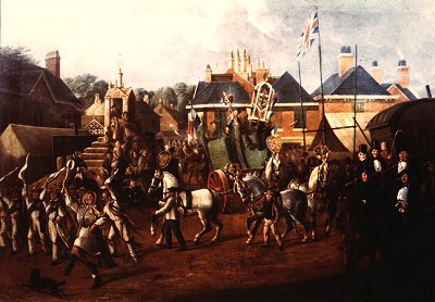 ancient custom" took place, the cart was drawn by "a gallant team of