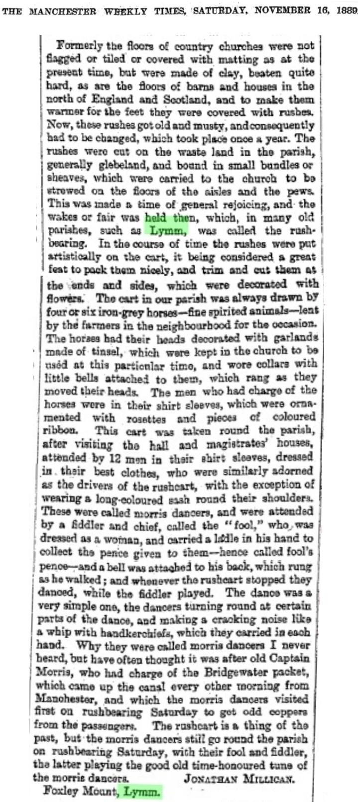 round the parish on Rushbearing Saturday, with their fool and fiddler,